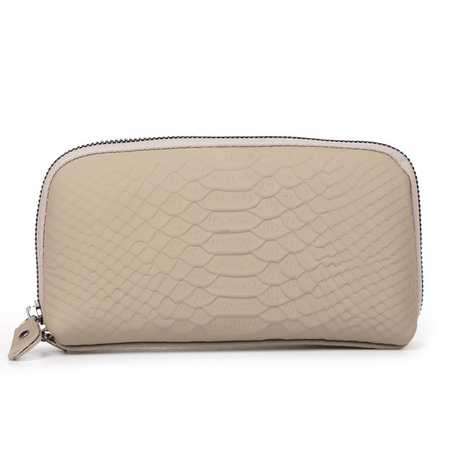 Жіноча шкіряна косметичка. Закривається на блискавку. Усередині розміщене подвійне відділення, розділене кишенею-перегородкою на блискавці та бічна відкрита кишеня.