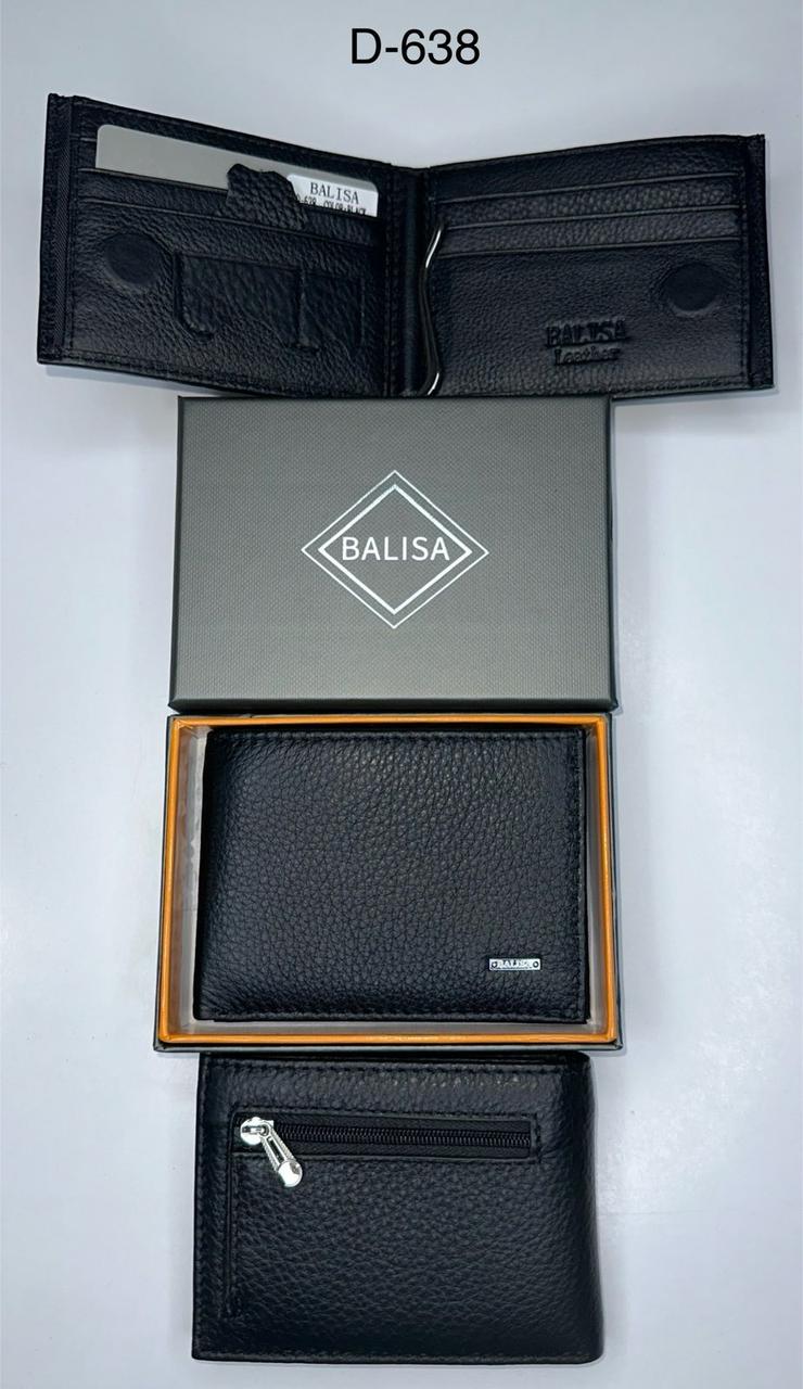 Чоловічий шкіряний гаманець-затискач BALISA. Закривається на магніт. Усередині є одне відкрите відділення для банкнот і одне на блискавці, затискач для банкнот і 6 кишень для карток. Зовні на зворотному боці є монетниця на блискавці.